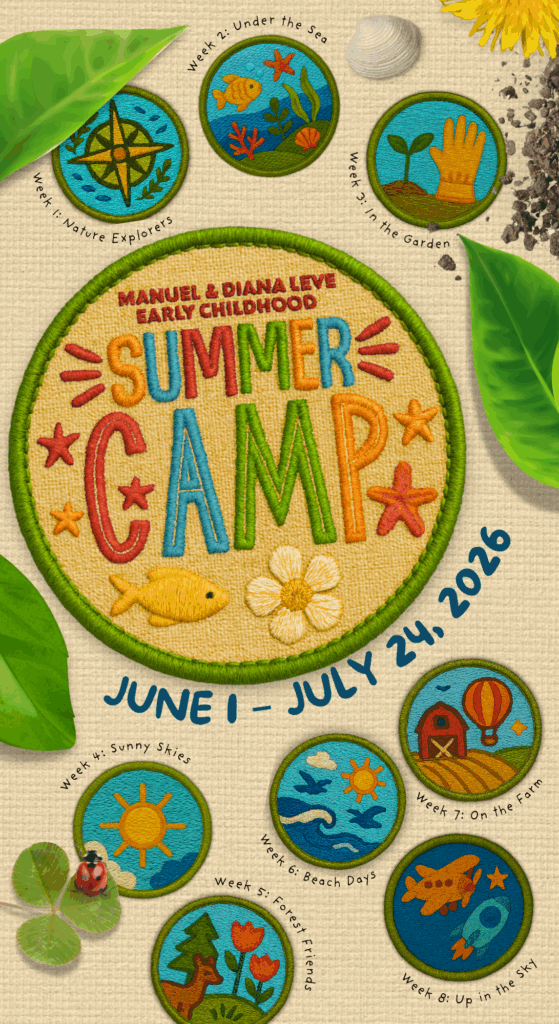 At the Manuel & Diana Leve Early Childhood Summer Camp in the Ethel and Harry Glanzman Youth Pavilion, we recognize the essential role of play in early development, including adventurous play! Each week features a different theme with teachers encouraged to make changes based on the interests of the children.